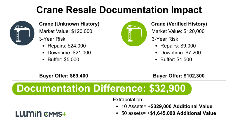 In this example, good records support a higher asking price of $32,900 (a 47% increase over the poorly documented scenario). Now, extrapolate this across all assets you plan to resell, using lifecycle cost tracking to protect value from acquisition through disposition.